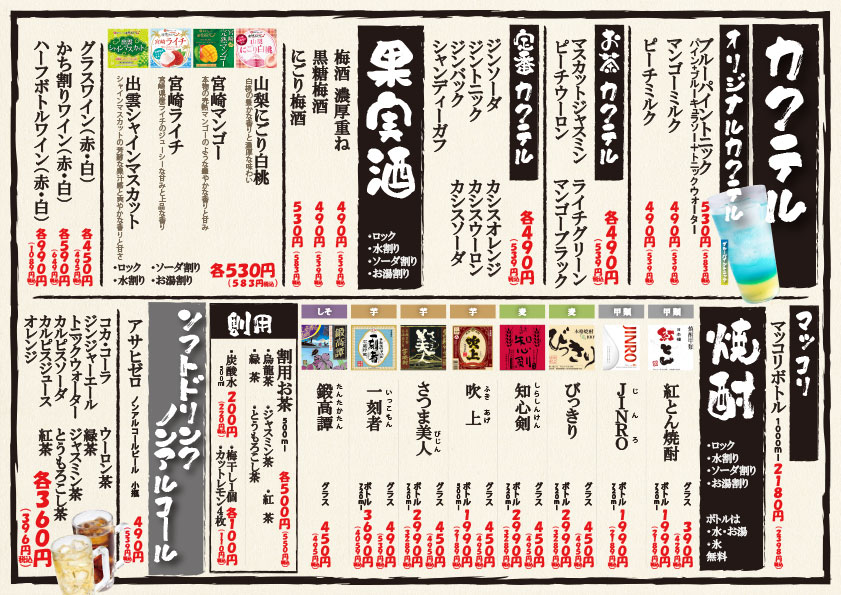 [平日 14:00〜翌朝4:00] [土 12:00~翌朝4:00 [日・祝 12:00~23:30]