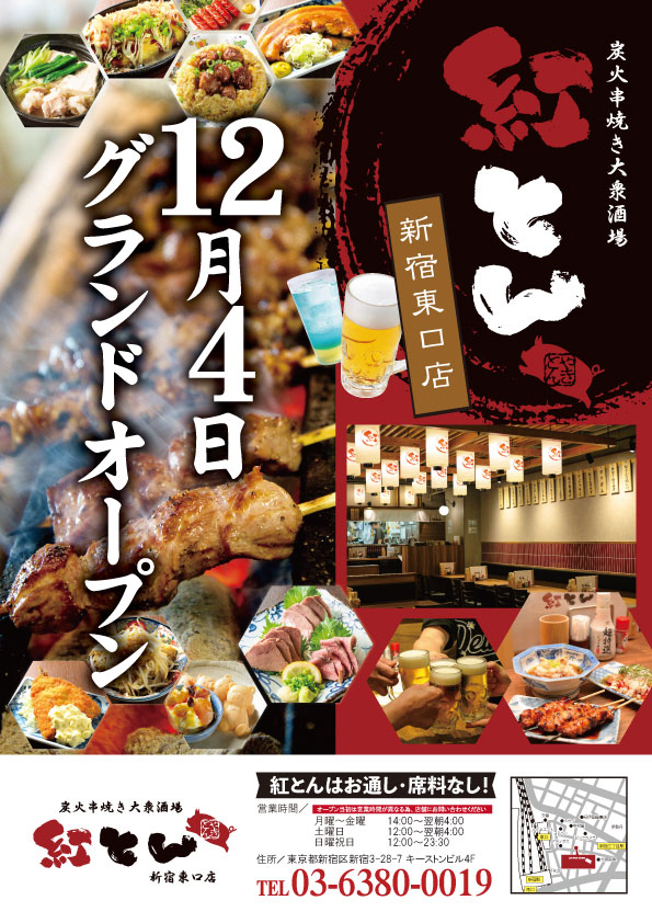 2025年12月4日(木)、紅とん 新宿東口店 がオープンいたします。