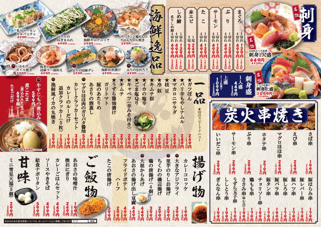 串焼き1本、刺身が1切れから選べて、自分流のお刺身盛りが作れるのが特徴です。